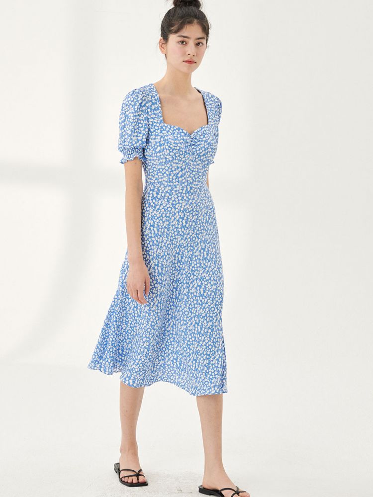 하트 쉐입 네크라인이 돋보이는 원피스입니다. 소매 밴딩으로 할동성을 높이고 작은 셔링 디테일을 더해 완성도가 높은 제품입니다. 실키한 착용감으로 편하고 화려한 연출이 가능 합니다.화사한 옐로우컬러와 블루컬러로 구성되었습니다.