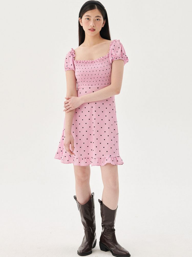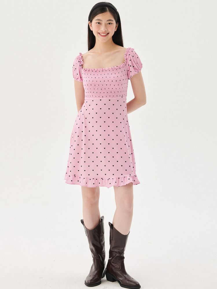 잔잔한 플라워 패턴에 바디부분 스모킹 처리가 포인트인 드레스입니다. 귀여운 캡소매와 프릴디테일로 발랄한 무드로 연출이 가능합니다. 스모킹처리로 시원면서도 몸에 맞게 착용하실 수 있습니다. 기본적인 실루엣은 미디기장의 A라인 핏으로 편안하게 착용이 가능합니다. 컬러는 핑크와 라이트 블루 두 컬러로 출시되었습니다.