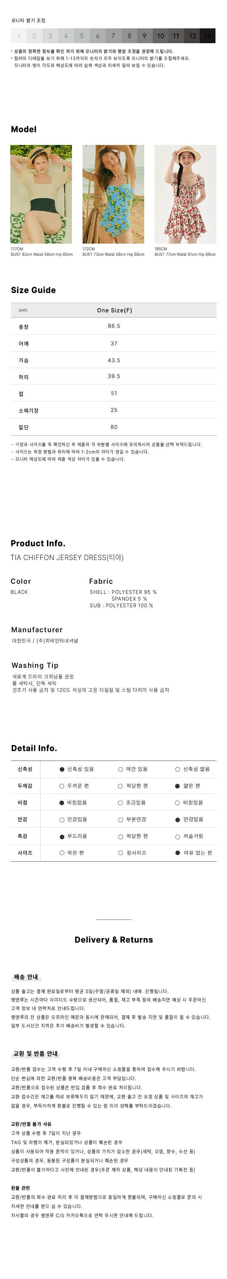 소매와 밑단 부분의 쉬폰 프릴디테일로 발랄한 무드의 티아드레스입니다. 꽃 코사지 포인트인 드레스로 뒤에 리본을 묶어 사이즈 조절이 가능합니다. 기본적인 실루엣은 A라인 핏의 미디 기장으로 편안하게 착용하실 수 있습니다. 컬러는 블랙로 출시되었습니다.