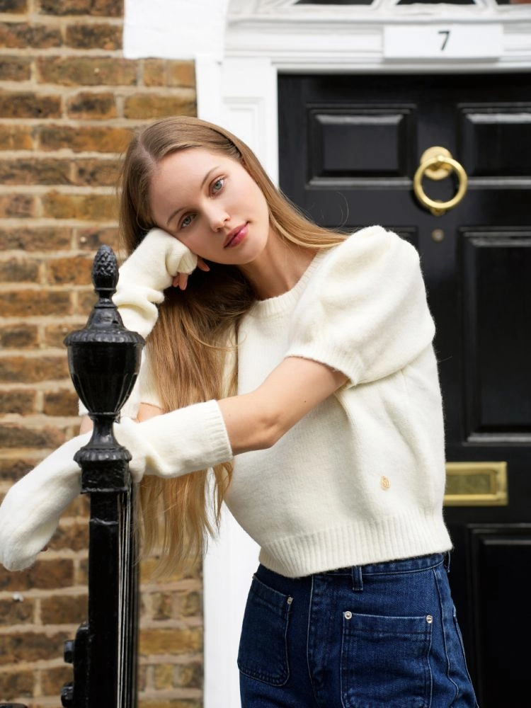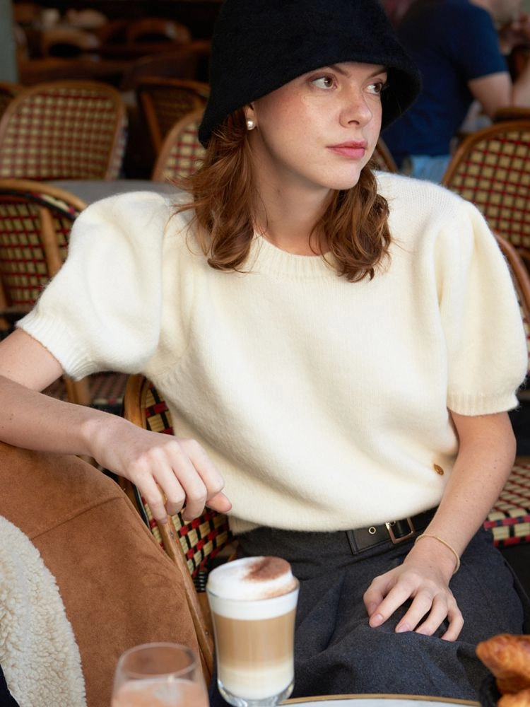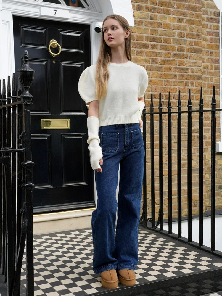 - 암 워머와 하프 슬리브 퍼프 니트 세트